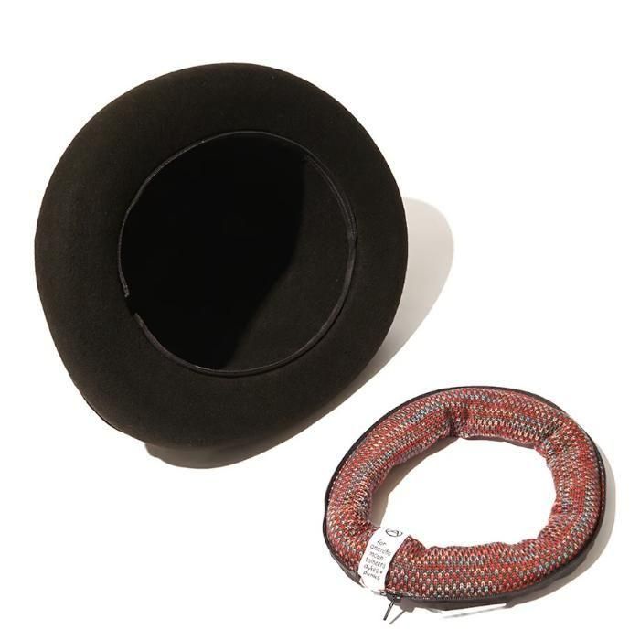 帽子界では類を見ないと言われている特注で製作に及んだオリジナル極厚フェルトは、アイコニックなディティールであるブリムの大きな反り返りを表現可能にしつつ、圧倒的な保形力を発揮。