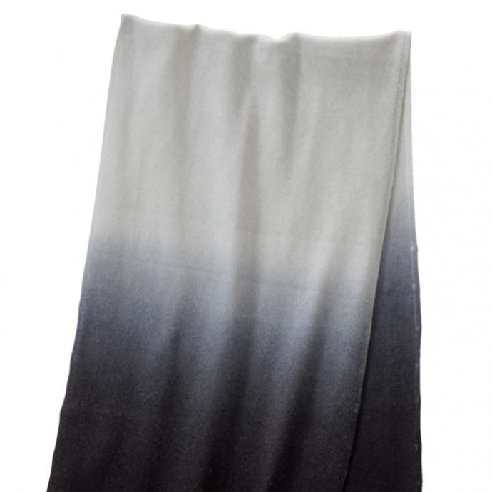 コレクションのカラーパレットから段々と淡く移り変わっていくようにグラデーション表現したマフラー。