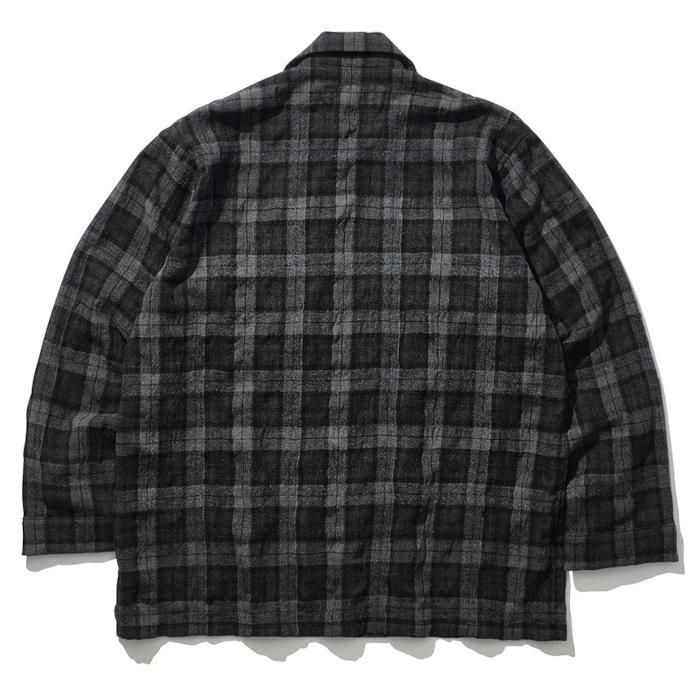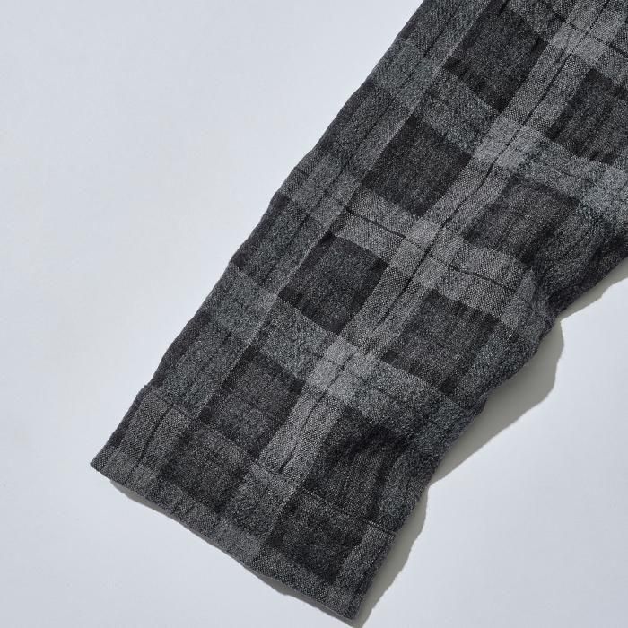 スピリットと暖かみを感じるコットン混の縮絨チェックウールを採用。