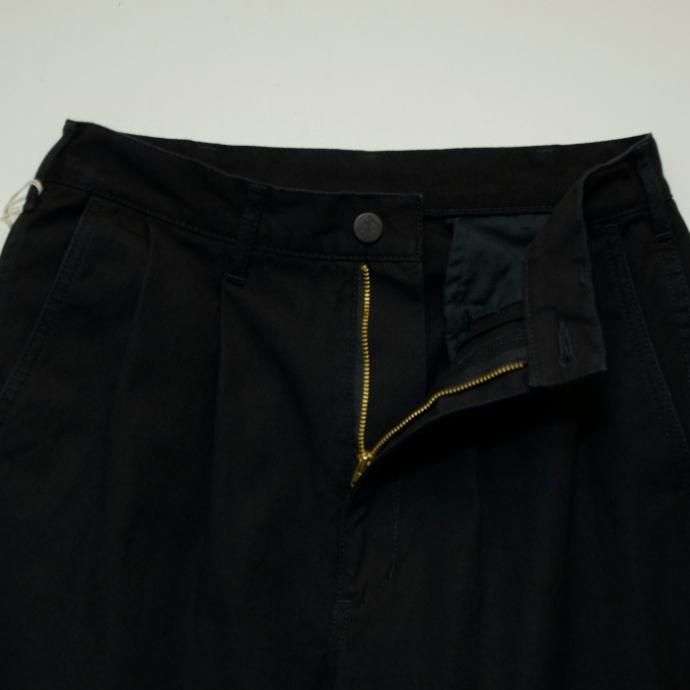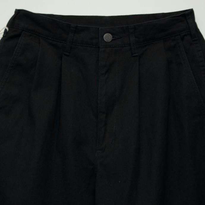 2プリーツで腰廻りにゆとりを持たせたワイドテーパードシルエット。