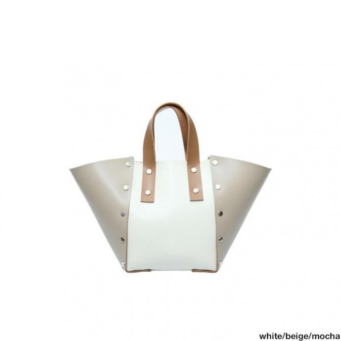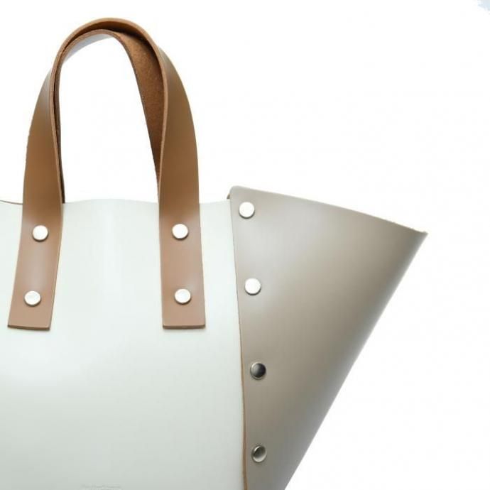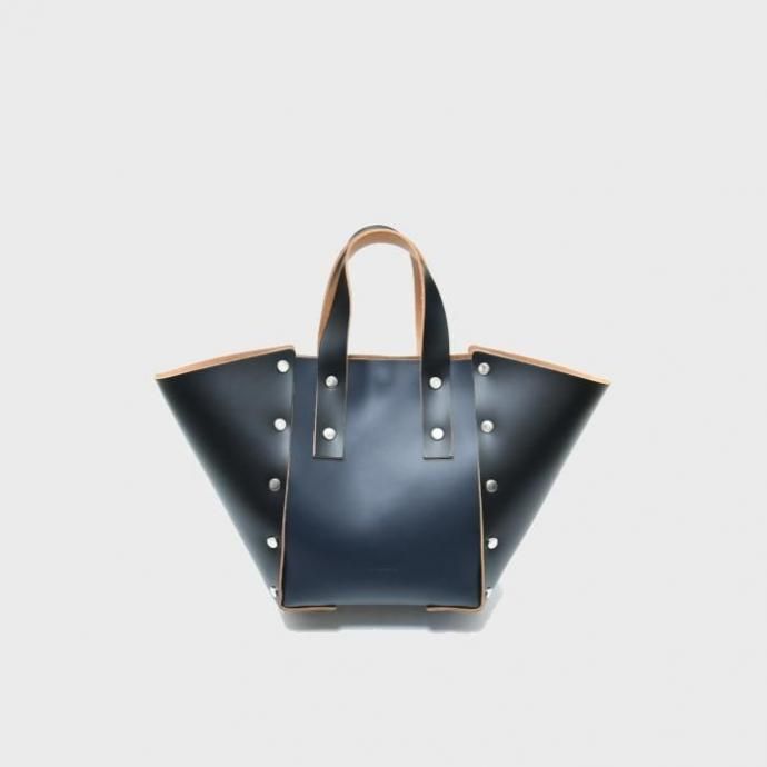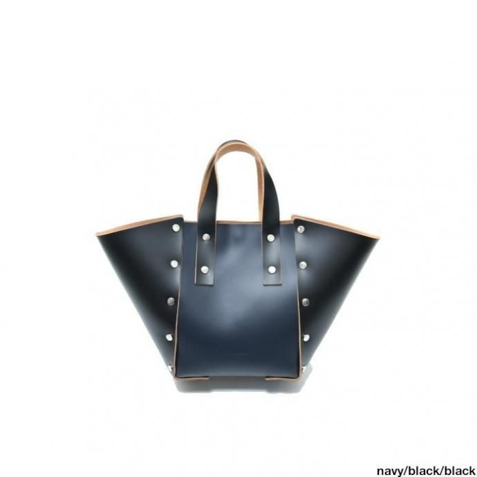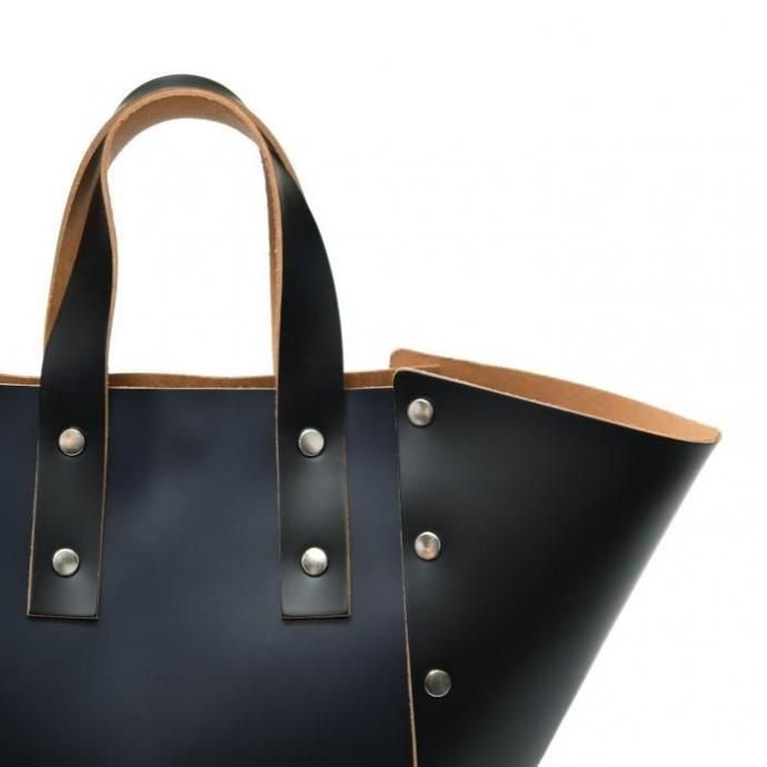 プラモデルを組み立てるように縫製などのプロセスを介さず、レザーのパーツをリベットで留め、組み立てることで成形したプロダクト。