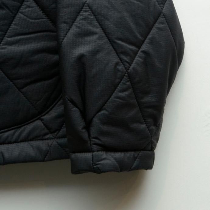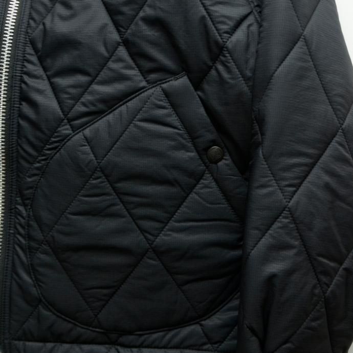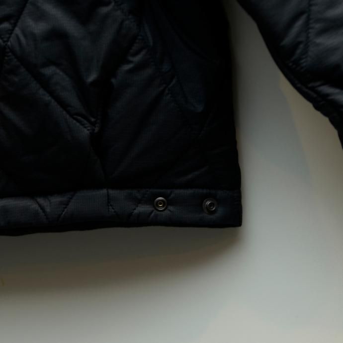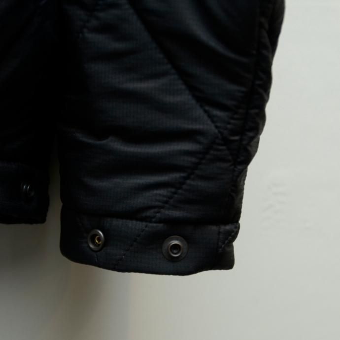 キルティング地はシェルに撥水性の高いナイロンリップストップ、中綿は蓄熱機能のある国産の機能綿、ライニングにも蓄熱機能のあるトリコット裏地の組み合わせ。